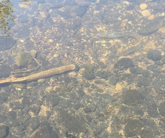 As a retired wildlife biologist, I’m drawn to hiking in waders and exploring rivers and surrounding marshes and wetlands. I usually find something and, on this trip, I found lampreys. I watched as they hollowed out depressions in the river (engineering nests). Eventually, the female lays eggs while the male looks on. Here’s a video of one active lamprey nest I found.